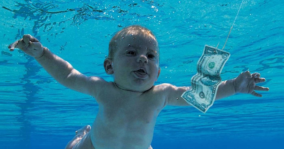 La portada de "Nevermind" está considerada como una de las más icónicas de la historia del rock y muestra a un bebé buceando en una piscina y a la caza de un billete de un dólar.