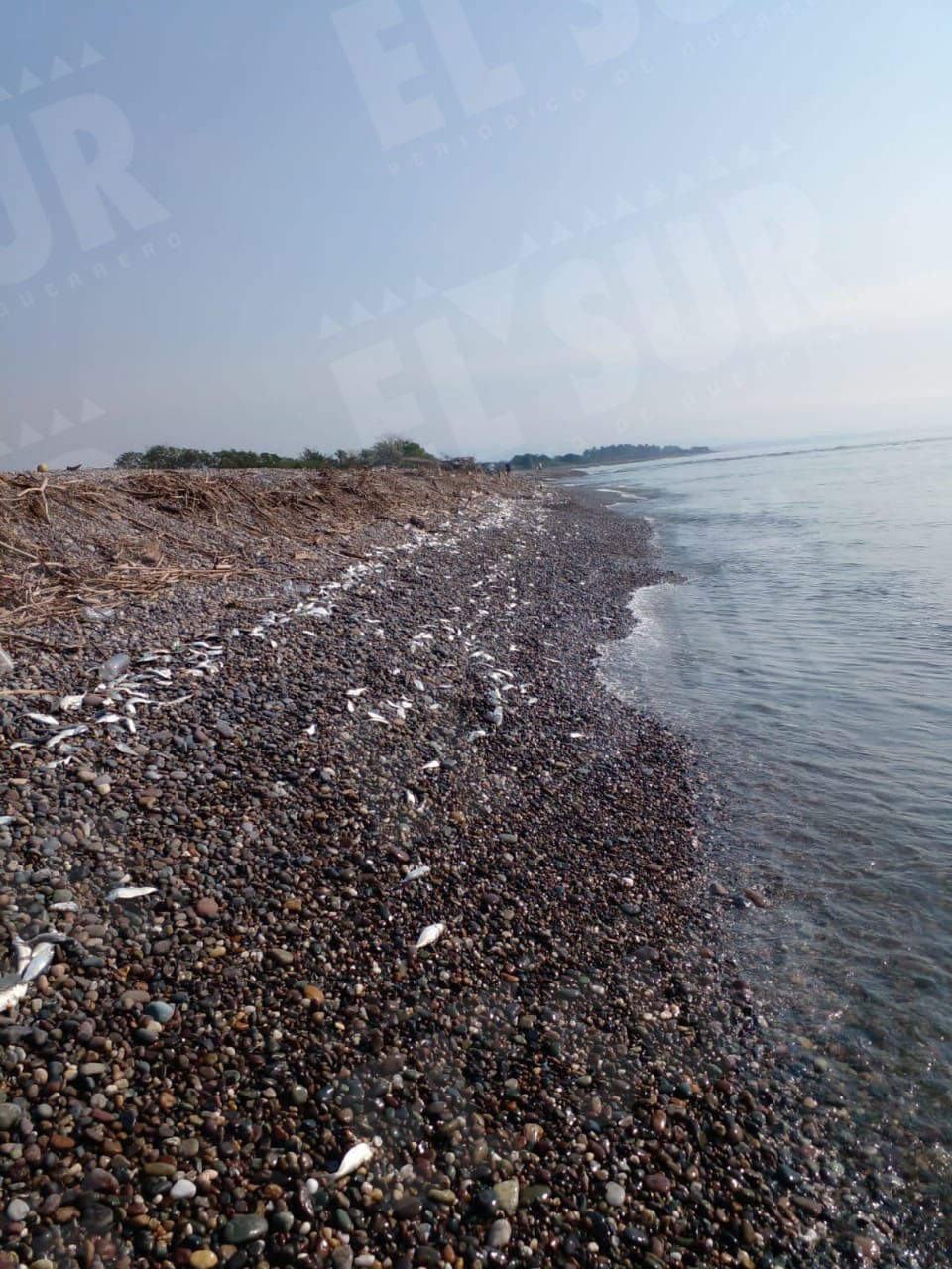 Los pescadores compartieron fotografías este martes 4 de enero en las que se observa una gran cantidad de sardinas muertas dentro de la termoeléctrica, así como saliendo del canal y en la orilla de la plata de la bahía de Petacalco.