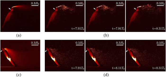 "El mayor reto es cómo utilizar las partículas en el agua para simular las gotas en el aire", explica Wang. "Lo más sorprendente fue que las partículas más altas que la cabeza pueden recorrer una distancia mucho mayor que las partículas más bajas que la cabeza debido a la inducción del flujo de estela".