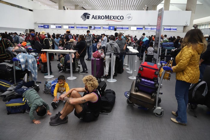 Ciudad de México, 8 de enero (SinEmbargo).– La cancelación de decenas vuelos por contagios de coronavirus entre el personal de las aerolíneas provocó el viernes largas filas y aglomeraciones en el Aeropuerto Internacional de la Ciudad de México (AICM) que se extendieron hasta este sábado, principalmente en la terminal 2.