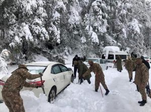 Personal de emergencia distribuyó alimentos y mantas a las personas mientras estaban atrapadas en sus vehículos cubiertos de nieve, pero muchas murieron de hipotermia. Otros pueden haber muerto por envenenamiento por monóxido de carbono después de hacer funcionar los calentadores de sus autos durante largos períodos de tiempo, dijo el médico de los servicios de rescate Abdur Rehman.