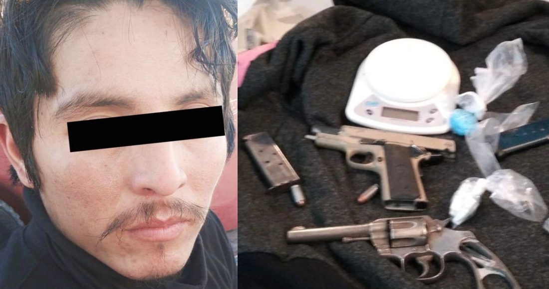 Los detenidos portaban un revólver calibre .357 con dos cartuchos útiles, una pistola calibre .45 con once tiros útiles en su cargador, además, se les encontraron 40 envoltorios de narcótico, una bolsa con 14 gramos y otra con 2 gramos de una sustancia granulada azul.