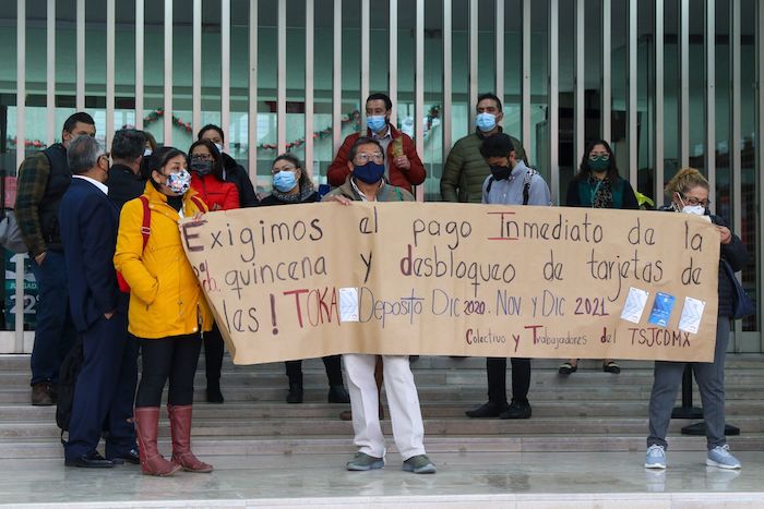 Ciudad de México, 10 de enero (SinEmbargo).- Los trabajadores del Poder Judicial de la Ciudad de México ( PJ-CdMx) protestaron y expresaron este lunes su malestar ante la falta de pago de sus vales de fin de año.