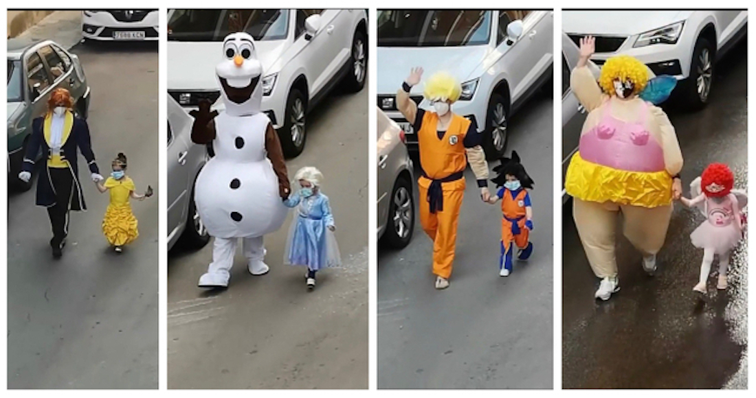 VIDEO: Padre se disfraza para llevarle comida a su hija; fue aislada por tener COVID
