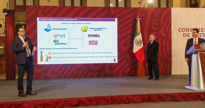 Los funcionarios de la CFE sacaron gráficos y mostraron información en la que acusan a Femsa de estar mintiendo para mantener tarifas bajas que heredaron de “gobiernos neoliberales”.