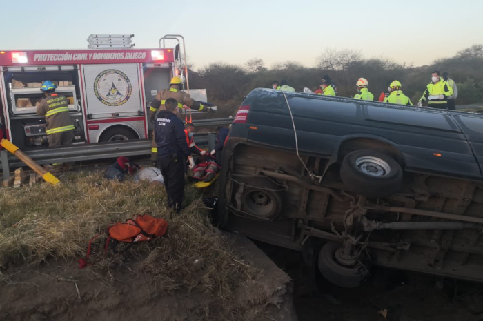 En la mañana de este sábado, una camioneta tipo van que transportaba personal turístico volcó en la autopista León – Aguascalientes, a la altura del kilómetro 35, en el municipio de Lagos de Moreno, en Jalisco.