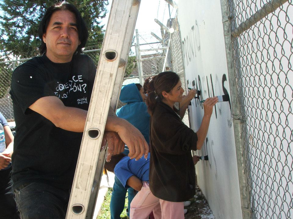 “Desde el principio, el proyecto me gustó mucho, pero confieso que tenía algo de miedo, porque uno se hace ideas equivocadas de cómo son las prisiones… pero una vez adentro, todo cambió: Yo mismo viví una transformación, fuimos dos días, el primero para contarles lo que era la Acción Poética, y les dejamos como tarea que ellas mismas (las reclusas) pensaran en frases para pintar en algunos muros que nos permitieron pintar con su poesía, con las frases elegidas por ellas para ver durante todos los días que dure su encierro”.