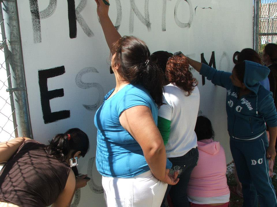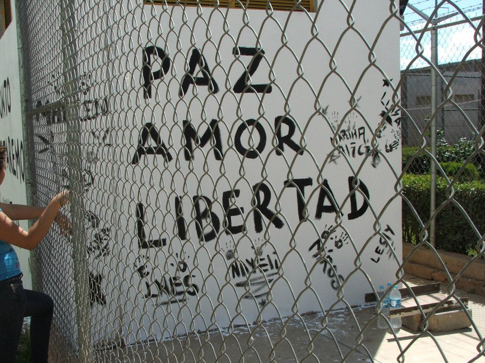 Por ahora, con esta ‘intervención poética’, el proyecto fue precisamente al contrario: ingresar las palabras al contexto carcelario y el resultado fue tan mágico como sencillo: tres pequeñas bardas con tres pequeños mensajes: “Pronto estaremos juntos”… “Libera tu alma: ama”… “Paz, Amor, Libertad”… las mismas reclusas escribieron la poesía que querían leer en su cotidianeidad repetida. Las frases que habrán de recordar con la mirada de afuera, para darle algún sentido propio y personal, a la mirada de adentro.