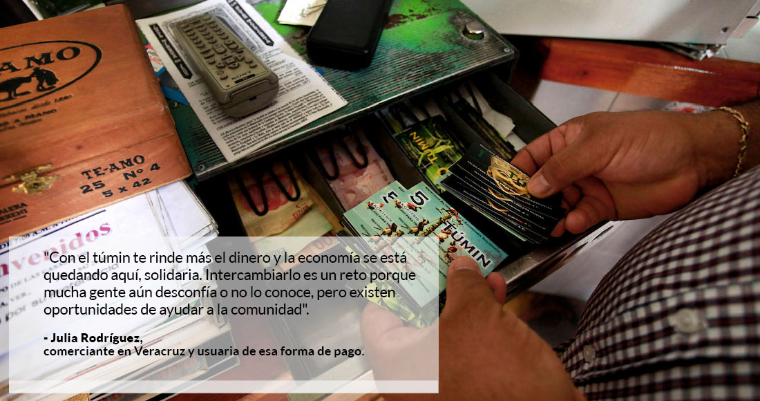 Los productores de frutas y hortalizas de la localidad veracruzana de El Espinal, en la que viven unos 25 mil habitantes, en su mayoría indígenas, no tardaron en reunirse para imprimir y utilizar Túmin con el fin de hacer frente a la escasez de efectivo y al aumento de los precios.