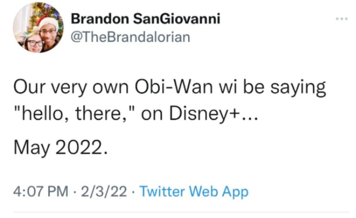 Ha sido un ejecutivo de Disney a quien se le ha escapado la información. Brandon SanGiovanni, gerente de programas globales y Empresa de Disney+, compartió un tuit en el que revelaba que "Obi- Wan dirá 'hola, estoy aquí' en Disney+ en mayo de 2022".