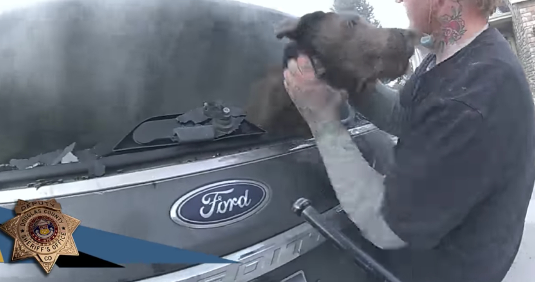 En Castle Rock, Colorado, un policía llegó ante el registro de un incendio de un automóvil; al llegar, el dueño del automóvil le alertó que adentro había un perro, por lo que el oficial procedió con romper los cristales para poder sacar al animal de ahí, cosa que finalmente se logró.