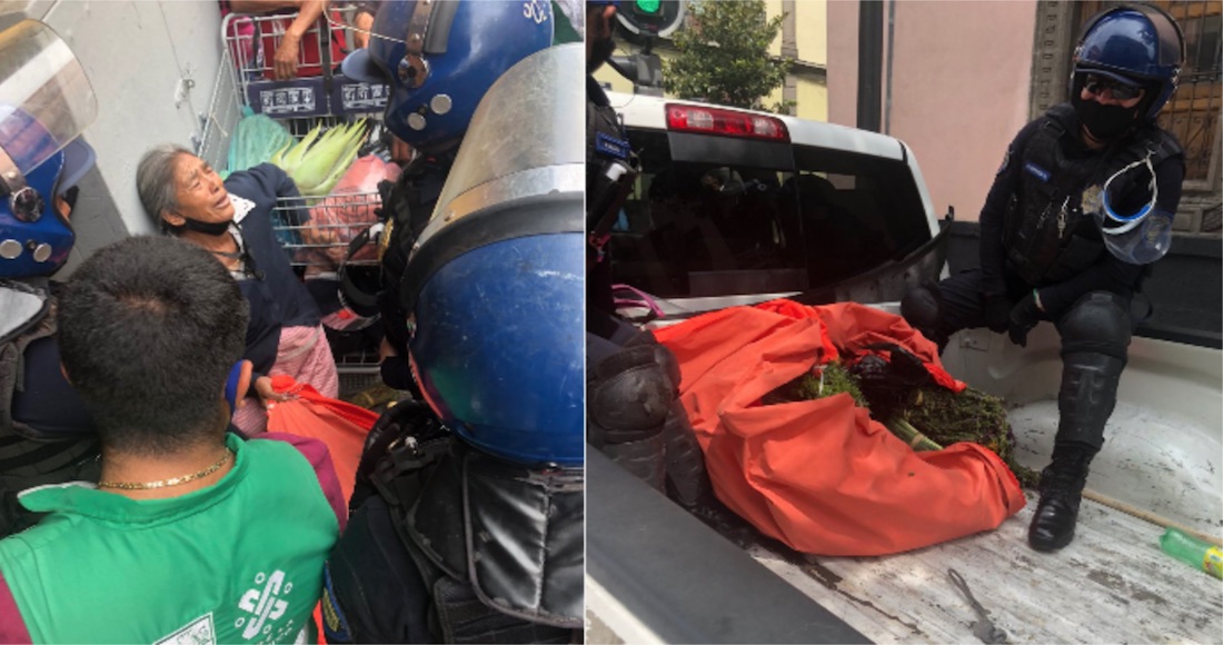 "Permítame por favor, me está lastimando", dice la mujer de 62 años que es sometida por tres policías municipales. Ella está tirada en el piso, mientras las agentes se enciman sobre ella para detenerla.