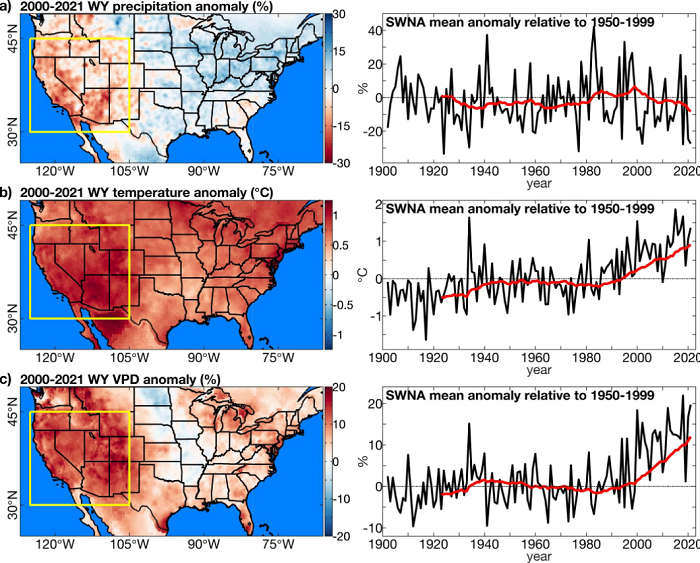 2/ The cause of drier-than-average soils in the 2000s was low precipitation, but high temperature and vapor-pressure deficit (combined effect of temperature and humidity on atmospheric aridity) made the 2000s drought more severe. pic.twitter.com/KBLEX1ZCO0