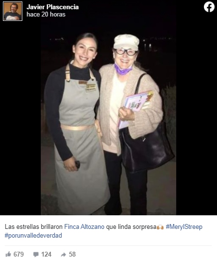 "Las estrellas brillaron Finca Altozano que linda sorpresa #MerylStreep #porunvalledeverdad”, redactó el chef bajacaliforniano.
