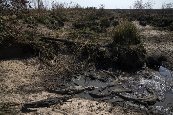 La semana pasada grabó una escena con su celular que la sobrecogió de tristeza: una docena de caimanes huyendo de las llamas y recorriendo un camino de tierra en busca de agua. Le llamó la atención que se moviesen de día ya que son reptiles muy lentos que se desplazan por la noche para evitar el calor.