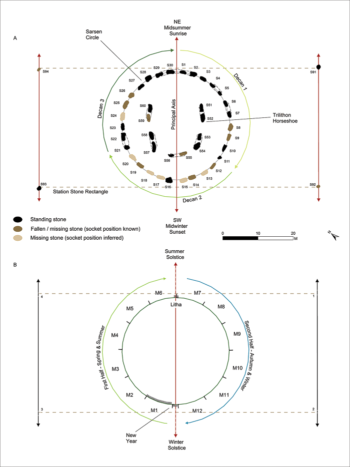 El círculo de grandes piedras habría sido diseñado como un calendario solar. De acuerdo con el investigador principal, "cada una de las 30 piedras del círculo de sarsen representa un día dentro de un mes".