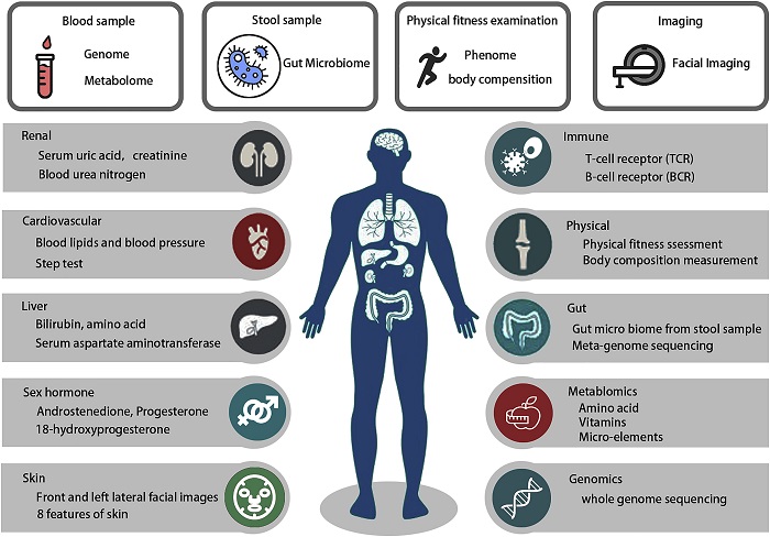 Los investigadores midieron 403 características y las asociaron a nueve categorías: corazón, riñones, hígado, sexo, piel facial, nutrición, inmunidad, estado de forma y flora intestinal.