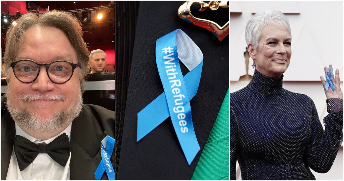 El director Pedro Almodóvar y el compositor Alberto Iglesias, nominado al Oscar por Madres paralelas, fueron algunos de los que llevaron el lazo, que les había entregado la actriz y embajadora de la agencia de Naciones UNidas para los refugiados, ACNUR, Cate Blanchett, según contó Iglesias a Efe.