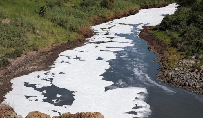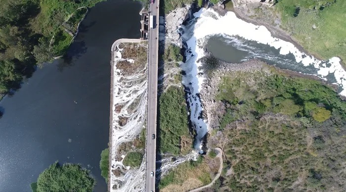 El río Santiago, que pasa por el corredor industrial de El Salto hasta Ocotlán, Jalisco, huele a una mezcla entre huevo podrido, detergente y heces de ganado. Está invadido por una espuma blanca tóxica. Pese a los millones de pesos que se han invertido en los últimos años en plantas tratadoras en los municipios del Área Metropolitana de Guadalajara, sólo el 34.33 por ciento de las aguas residuales es tratada, documentó el Instituto Mexicano para el Desarrollo Comunitario.