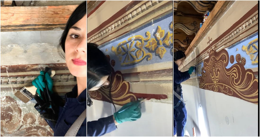 Fue el pasado 31 de marzo cuando el historiador Javier Lara Bayón denunció, a través de su cuenta de Twitter, los trabajos que realizó Amanda Quintana, quien en sus redes sociales se presenta como artista y tatuadora, sobre una pintura mural semioculta en la capilla de la Exhacienda de Arroyozarco.