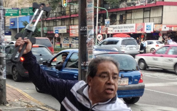 Del mismo vehículo descendió un señor vestido con short color azul y una camisa roja a amenazarlos con lo que parecía ser un bastón.