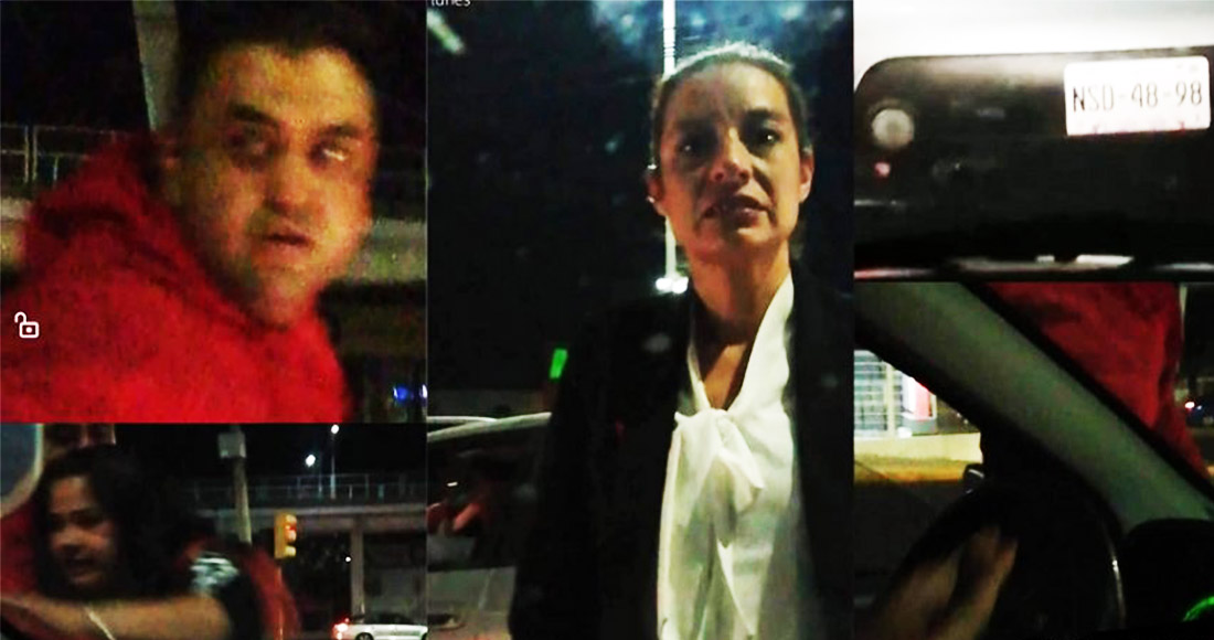 El conductor le pide al hombre que se calme, mientras la mujer le solicita detenerse, pues en el automóvil viene su hija. En ese momento se puede escuchar el llanto de la menor.