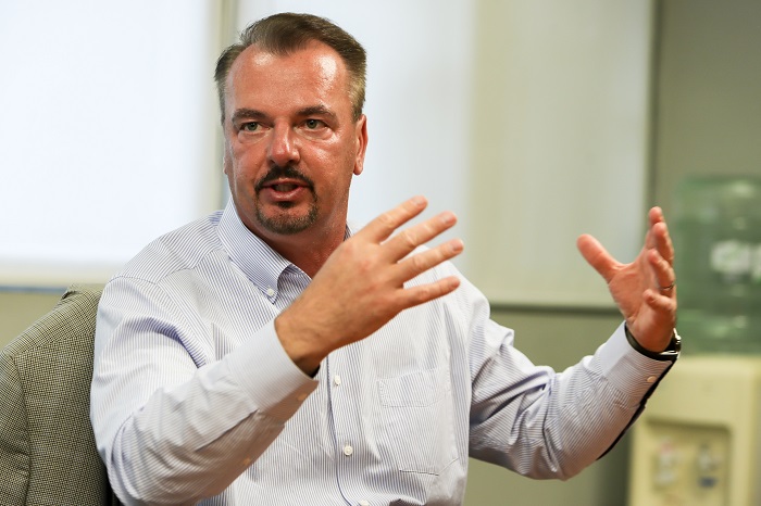 El ingeniero agrónomo alemán Frank Mitloehner habla durante una entrevista con Efe el 28 de marzo de 2022, en Montevideo (Uruguay). Foto: Alejandro Prieto, EFE