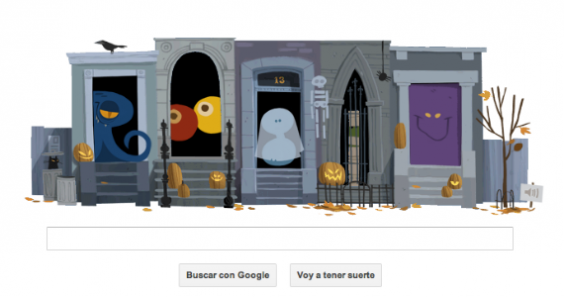 Este doodle está ambientado con sonido de viento, como en una película de terror, y cada animación suena de forma característica al darle click.