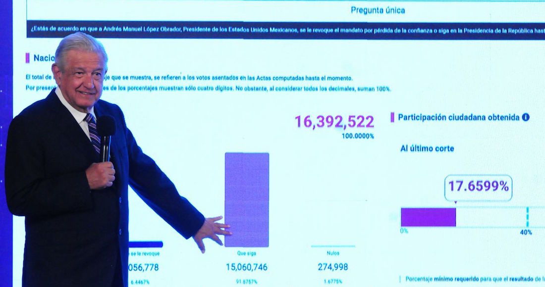 “Me parece que hubiera sido la oportunidad, la Revocación de Mandato, para cambiar la realidad de nuestro país y desgraciadamente esta campaña de desincentivar el voto se ve evidentemente que abandona la plaza y solo quedan los seguidores del Presidente que van a elegir", comentó.