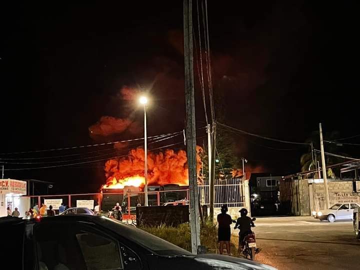 La maquiladora Augusta Sportswear Brands de Champotón, Campeche, se incendió en la tarde de este lunes, las llamaradas eran intensas y los servicios de emergencia no podían controlar el fuego que duró más de cuatro horas.
