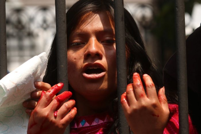 “No querían dejarlas salir”, reportó el activista José Antonio Lara en una alerta acompañada de fotografías donde se ve a las mujeres indígenas detrás de unas rejas. “Pero ya hubo un choque y ya salieron, pero a la fuerza”.