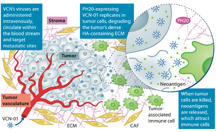 Los resultados preliminares de VCN-01 muestran que el virus llega a los tumores primarios y a las metástasis y desencadena la respuesta del sistema inmunitario contra los tumores.