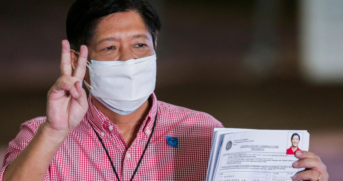 Una extensa campaña de desinformación ha llevado a que Marcos se haya colocado como el candidato favorito con 33 puntos porcentuales por delante de su más inmediata rival, Leni Robredo, quien lo venció en la carrera hacia la Vicepresidencia en 2016.