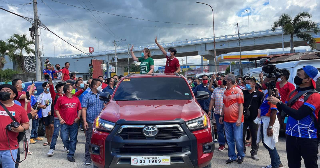 Marcos se presenta en tándem con Sara Duterte-Carpio, que es favorita para el cargo de Vicepresidenta, que se vota de manera independiente, y es hija del actual Presidente, Rodrigo Duterte, que por ley no puede aspirar a la reelección.