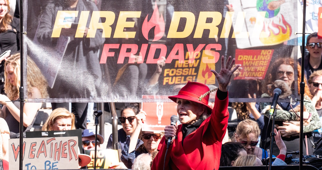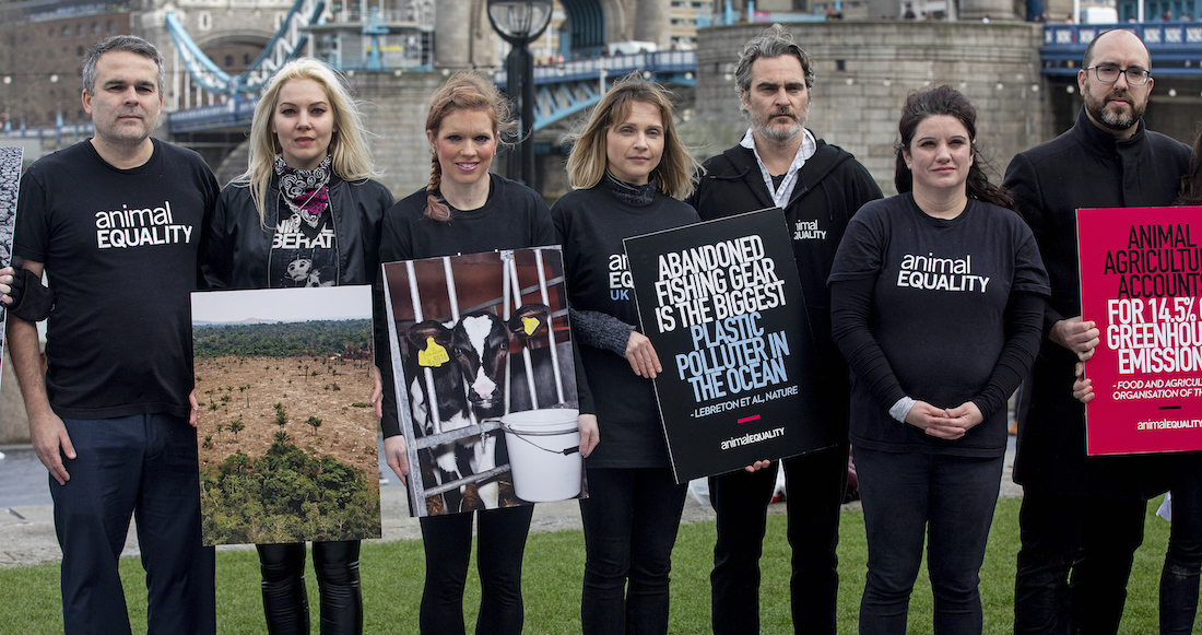 "¿Cuándo dejarán de obtener enormes ganancias mientras los clientes, los animales y el medio ambiente sufren?”, dijo el actor mientras sus compañeros activistas transmitían la protesta por Facebook.