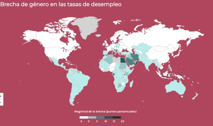 En ese sentido, México y el resto de los países latinoamericanos (a excepción de Guyana y Suranime) tienen brechas de género en las tasas de desempleo menores a los 5 puntos de diferencia. Hasta el momento del reporte, en la República Mexicana la tasa de desempleo para las mujeres era de 3.6 por ciento, mientras que para los hombres es de 3.5 por ciento.