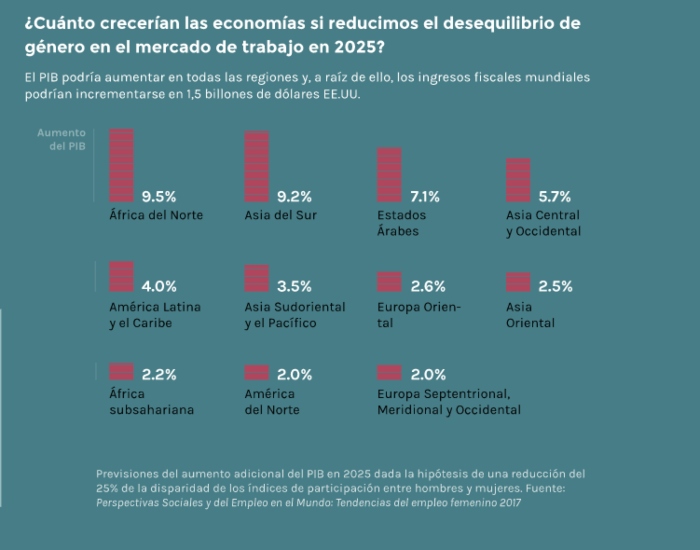 A nivel regional, romper la brecha laboral de género ayudaría a incrementar le PIB de Latinoamérica y el Caribe hasta un 4 por ciento.