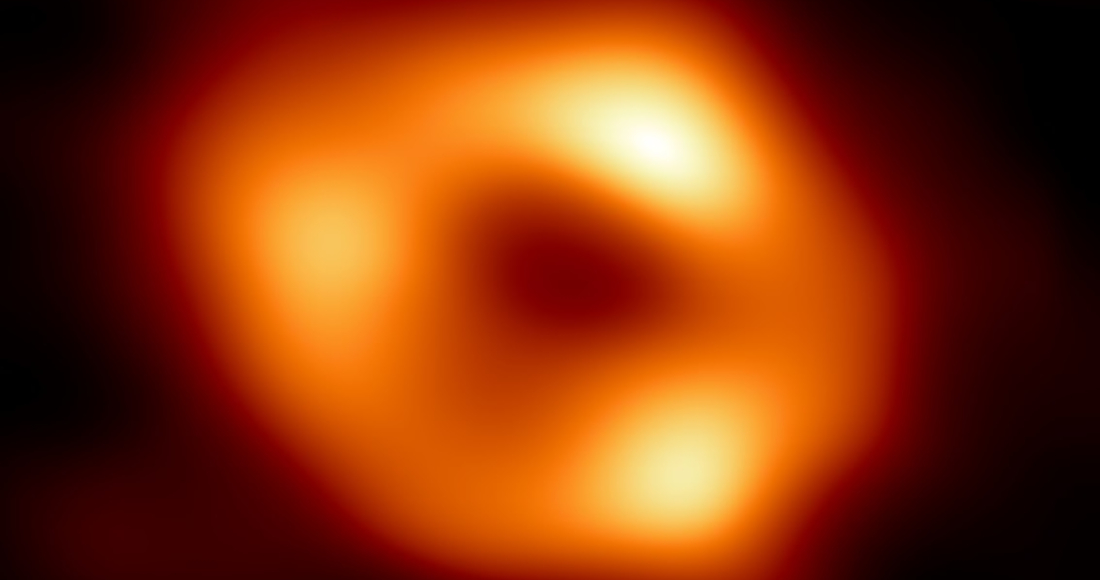 La nueva imagen, en la que se observa un anillo no perfectamente esférico amarillo y naranja, con tres puntos más brillantes, capta la luz curvada por la fuerza gravitatoria del agujero negro, cuya masa es cuatro millones de veces la del Sol.