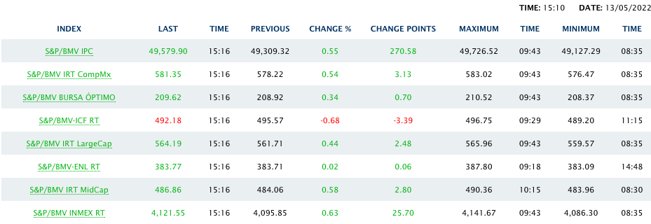 — Grupo Bolsa Mexicana de Valores (@BMVMercados) May 13, 2022