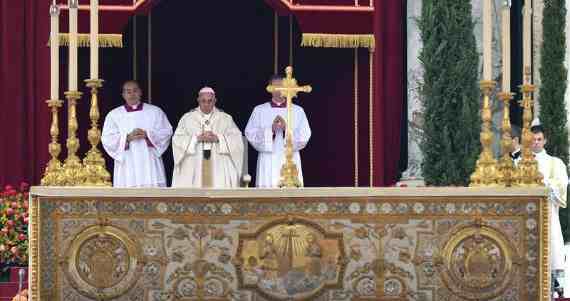 Era la primera misa de canonización en el Vaticano desde antes de la pandemia del coronavirus, y salvo por las celebraciones de Semana Santa el mas pasado, reunió a la multitud más grande de los últimos tiempos en la Plaza de San Pedro.
