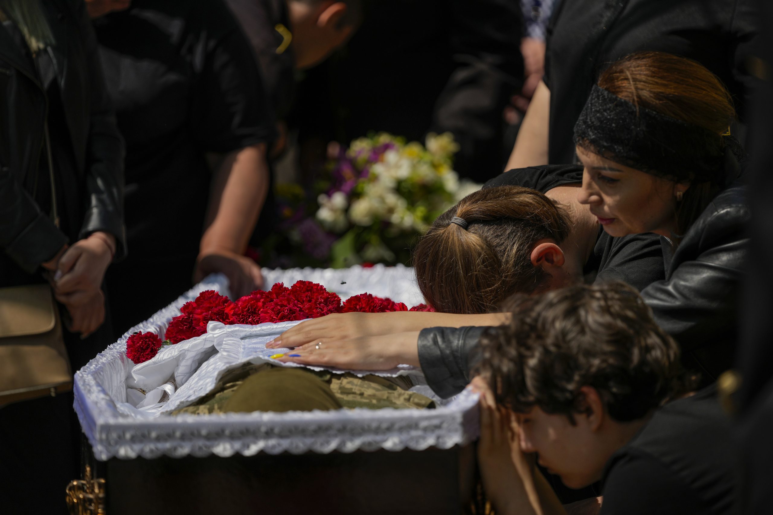 Hubo una banda militar y una salva de seis cañonazos. Sus hijos adolescentes, pálidos y aturdidos, caminaban detrás del ataúd de su padre sosteniendo imágenes enmarcadas de él con su uniforme de camuflaje.