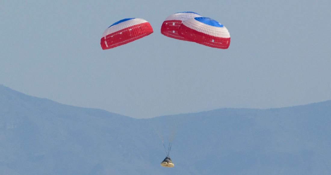Cuatro minutos después, la cápsula Starliner, que puede soportar temperaturas exteriores de hasta 3 mil grados Fahrenheit (mil 648 grados Celsius) al entrar en contacto con la atmósfera, aterrizó con suavidad en las arenas de White Sands.