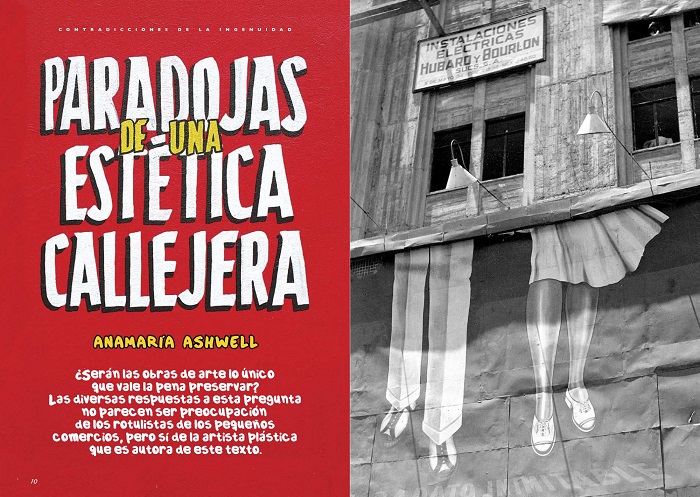 En el número 95 de la revista Artes de México se habla del papel de los rótulos comerciales, su origen y su evolución, planteado en un inicio como un “muralismo paralelo”, con otras intenciones y con otro desarrollo.