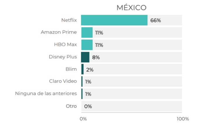 El mismo estudio enfatizó que tanto en México como en América Latina, la plataforma más contratada es Netflix, la cual incrementó su precio en México en junio de 2020 y después en noviembre del siguiente año. Los precios mensuales vigentes hasta el corte de esta nota son los siguientes: