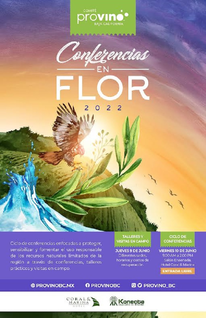 La 4ta. edición de Conferencias en Flor se realizarán el 10 de junio, este ciclo de conferencias nació como una iniciativa de habitantes, trabajadores, visitantes y productores del Valle de Guadalupe por promover prácticas responsables, nuevos métodos y tecnologías en el manejo de la tierra, el agua y los recursos naturales de la región. Busca a partir del conocimiento y su divulgación, generar un impacto en el manejo y desarrollo de las zonas agrícolas productivas de los distintos valles de Baja California.