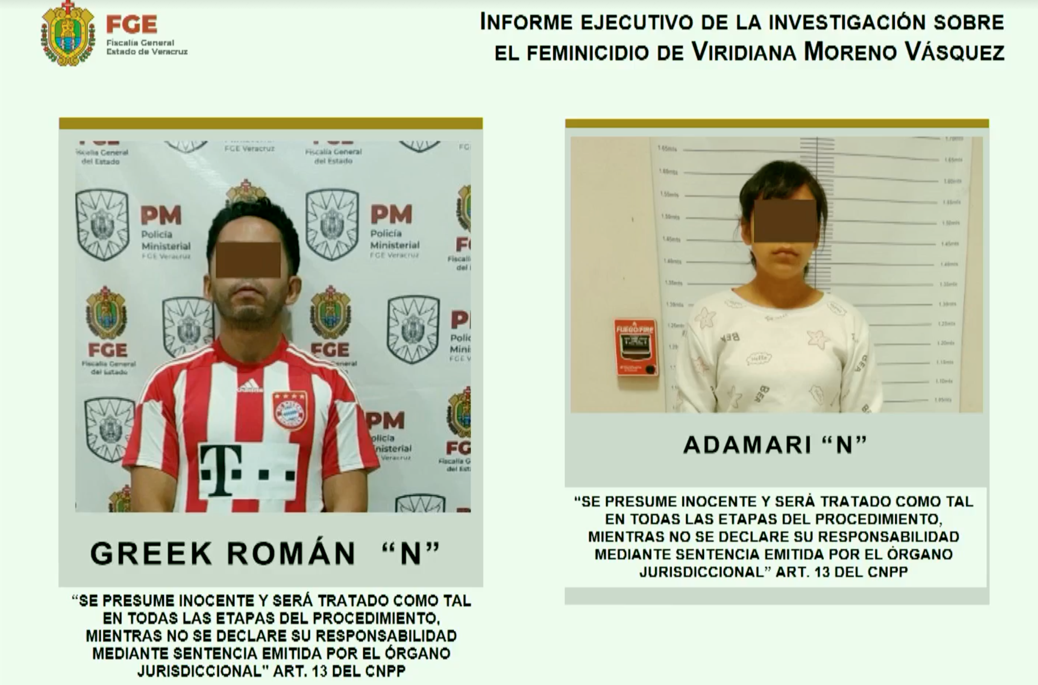 Ciudad de México, 2 de junio (SinEmbargo).- Verónica Hernández Giadáns, titular de la Fiscalía General del Estado (FGE), informó de la detención de Greek Román "N" y Adamari "N" como presuntos responsables del feminicidio de Viridiana Moreno Vásquez.
