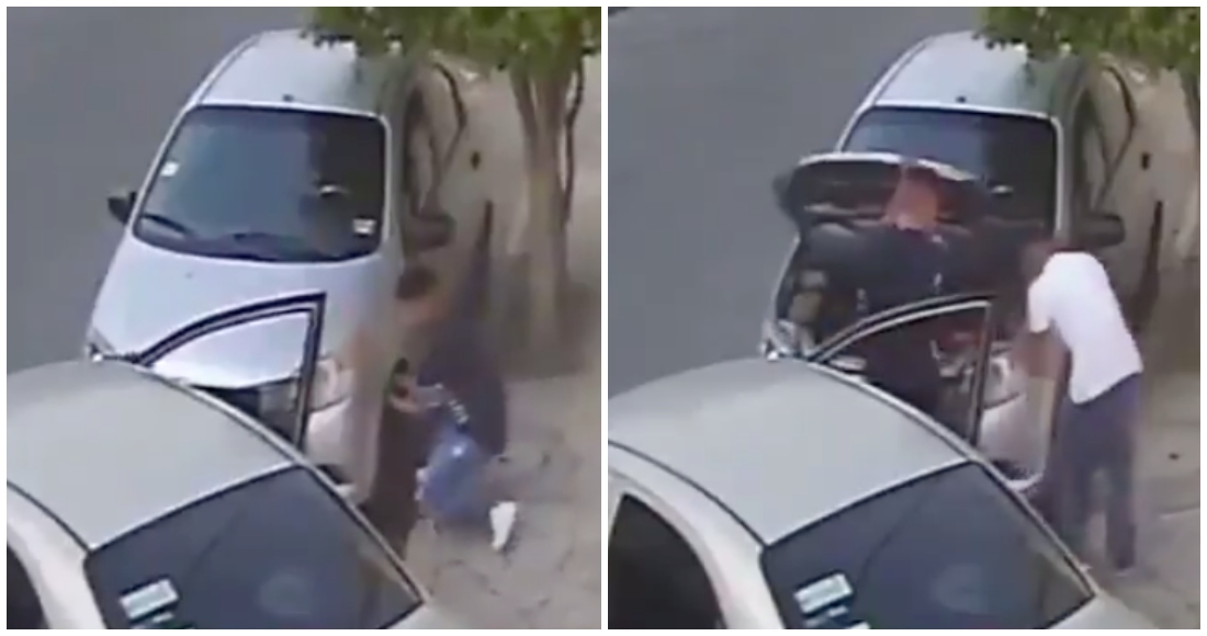 Luego de unos segundos de sacar su furia contra el maleante, finalmente el automovilista sube a su coche junto con sus acompañantes y se van del lugar.