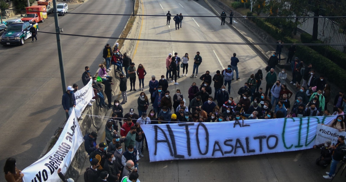 Con el apoyo de estudiantes de distintas universidades, los alumnos del CIDE se dirigieron hacia el Zócalo capitalino para exigir la renuncia de María Elena Álvarez-Buylla, directora del Consejo Nacional de Ciencia y Tecnología (Conacyt) por su "mala gestión".