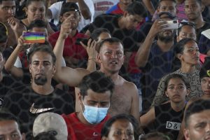 Junior Ramírez, de Venezuela, y su familia de unas 15 personas estaba entre éstos últimos y esperaban frente a un puesto del Instituto Nacional de Migración que está en las afueras de Huixtla, donde la caravana pernoctó el martes y el miércoles.