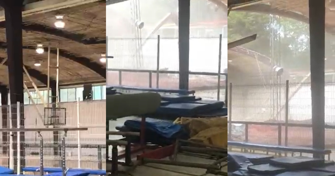 De acuerdo con las autoridades, a pesar de que una buena parte del techo de lámina cayó, no hay reportes ni de heridos ni de personas que hayan quedado atrapadas bajo los escombros.